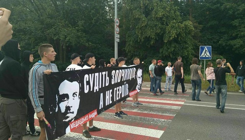 СИТУАЦИЯ. По его словам, активисты остановили кортеж главы ГПУ, желая провести с ним беседу по поводу суда над Андреем Медведько и Денисом Полищуком, которых подозревают в убийстве журналиста Олеся Бузины. Представители С-14 считают, что «над героями войны осуществляется ручное правосудие».