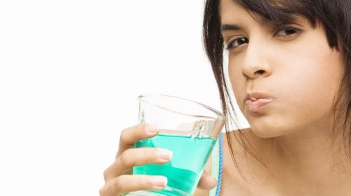 Прополощите рот теплой кипяченной водой. Если в доме есть ромашка, шалфей, мята – сделайте настой. Подойдет также 0,05-0,1% раствор хлоргексидина или соды (одна чайная ложка на стакан воды).