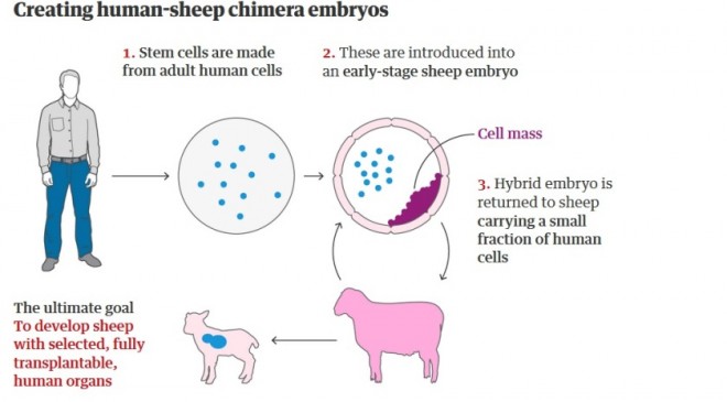 ЭКСПЕРИМЕНТ. Как рассказали исследователи, межвидовую особь получили путем введения человеческих стволовых клеток в эмбрион овцы. Доля человеческих клеток в эмбрионе не превышала одной тысячной процента. По этическим причинам, успешно полученные эмбрионы были уничтожены спустя 28 дней  после их создания.