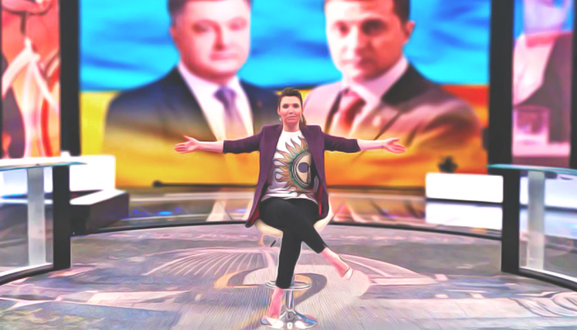 РОССИЯ 1. Главным тезисом первоапрельского часового шоу с Ольгой Скабеевой на телеканале Россия 1 стало объединение Украины против Порошенко: «Люди за стул бы проголосовали». Прозвучало мнение, что время русофобства «на Украине» заканчивается, и такая Украина России, пожалуй, даже нравится. Для полноты картины прокомментировать ситуацию предложили по Скайпу экс-президенту Украины Леониду Кравчуку, но высказаться полностью ему так и не дали.