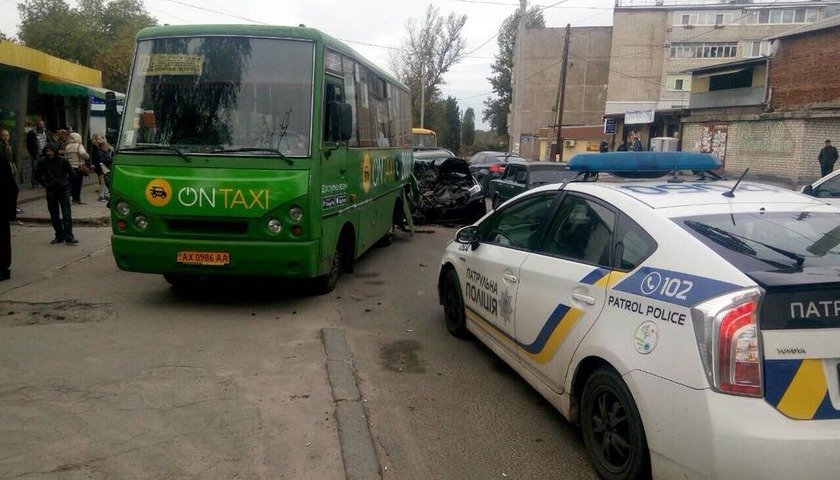 Харьков: гонщик на BMW влетел в маршрутку с пассажирами (фото)