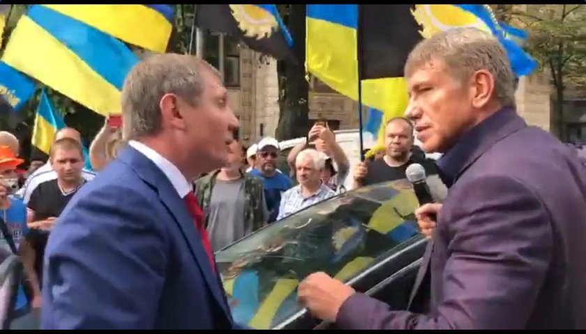 Их нравы: Министр подрался с депутатом перед митингующими (видео)