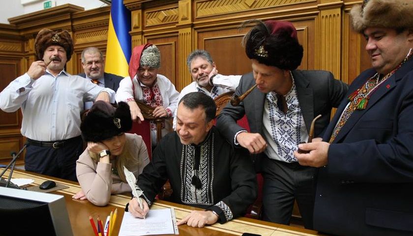 ПОДРОБНОСТИ. Депутаты подготовили письмо в ответ на введение РФ санкций против Украины. Вместе с Гончаренко к трибуне вышли также народные депутаты Олег Барна, Богдан Онуфрик и Григорий Тимиш, одетые, как казаки. Кроме них, «Письмо к Путину» подписали также Рефат Чубаров, Григорий Шверк, Александр Спиваковский, Владислав Севрюков и Игорь Артюшенко.