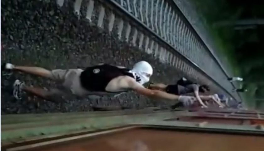 Вчера вечером в столице группа молодых людей остановила городскую электричку и разрисовала вагоны.