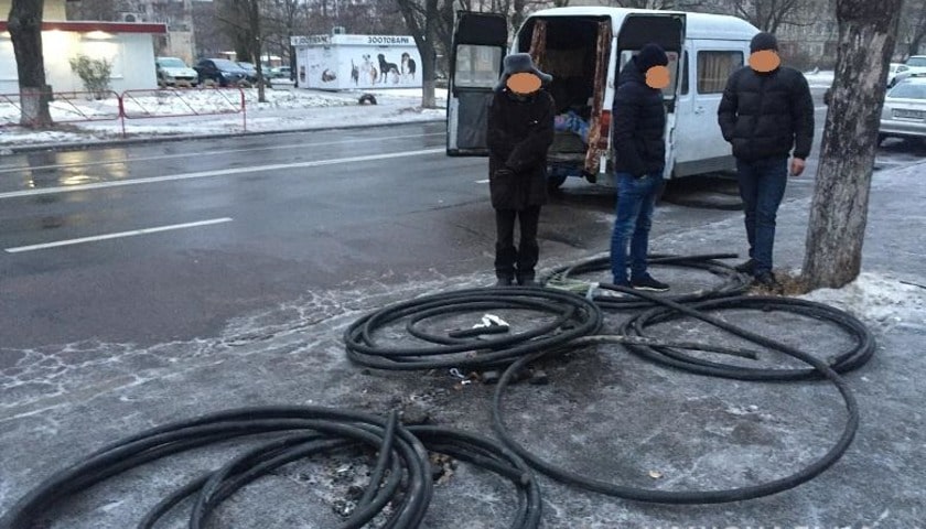 У задержанных изъяли 79 метров похищенного кабеля правительственной связи. По предварительным подсчетам, сумма ущерба составляет 162 тысячи гривен.