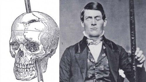 ДЫРЯВАЯ ГОЛОВА. В 1848 году Финеасу Гейджу, старшему мастеру бригады рабочих, строивших железную дорогу неподалеку от города Кавендиш в США, во время взрыва пробило голову железным штырем длиной около метра и диаметром в 3 сантиметра.Штырь вошел через его левую щеку и вышел около темени.