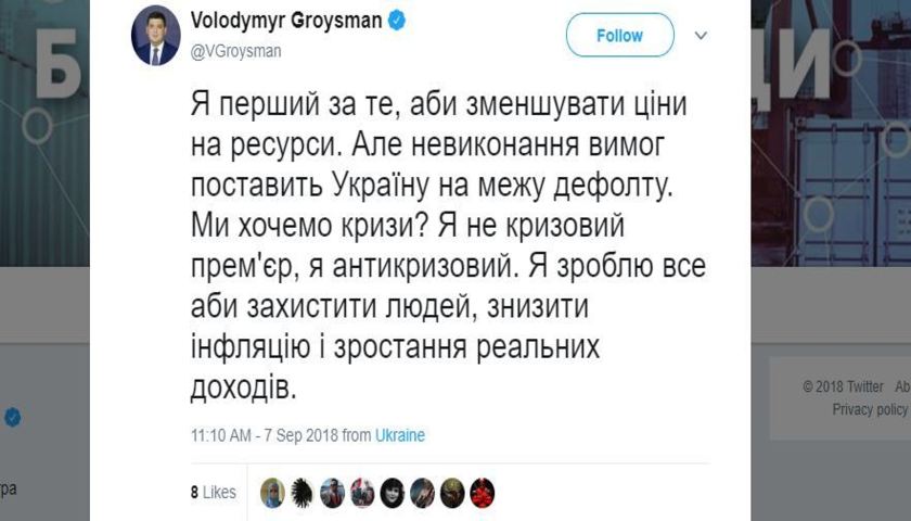 Премьер-министр Украины Владимир Гройсман сделал опечатку в своем посте в соцсетях и пообещал снизить рост доходов украинских граждан.