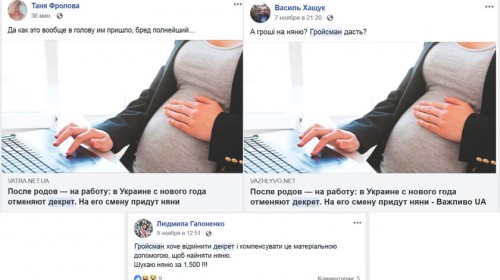 Сообщение об оплате правительством услуг «муниципальной няни» почему-то переросло в новость о том, что в Украине отменят декретные отпуска. Владимира Гройсмана обвинили в том, что он хочет истребить украинский народ, а будущим матерям выразили глубокое сочувствие, ведь теперь им чуть ли не на второй день после родов «предстоит выходить на работу». EtCetera выяснял, почему началась паника и отменял ли что-то премьер-министр на самом деле.
