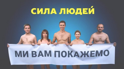 ФАКТ. Члены партии «Сила людей» ради предвыборной кампании снялись в провокационной фотосессии. Обнаженные лидеры политической силы сфотографировались с баннером, на котором написано «Мы вам покажем». Как заявили в партии, на такой шаг они пошли, потому что украинская политика превратилась в шоу-бизнес.