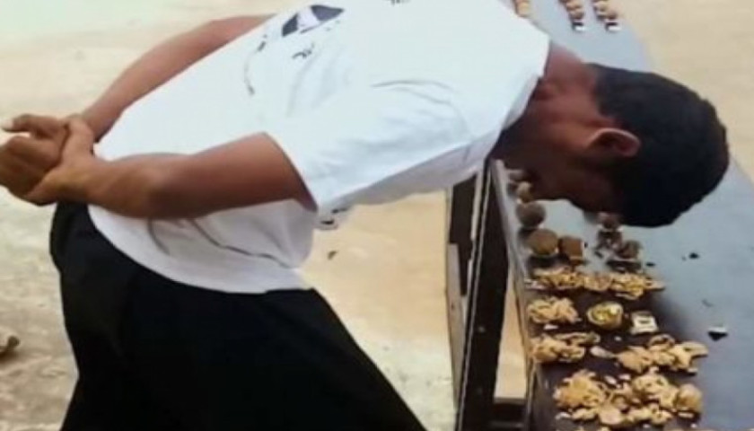 Работа головой: индиец расколол лбом 217 орехов (видео)
