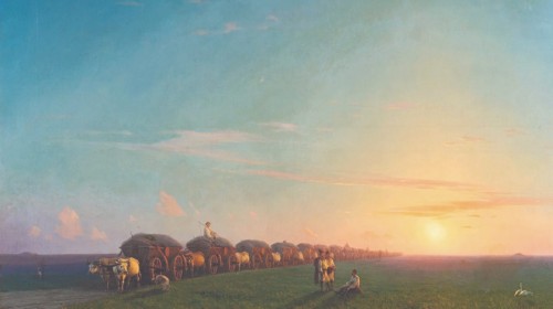 ЧУМАЦКИЙ КАРАВАН. Чумаки всегда отправлялись за товаром большим обозом. Так было безопаснее, рентабельнее и веселее. У каждого чумака было не менее пяти возов, а у самых богатых – до сотни. Как правило, чумаки формировали караваны по 40 возов. Дело в том, что в степи было мало колодцев, а одновременно из одного колодца можно было напоить не более 80 волов.