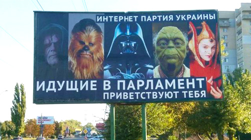 Украинская политика также пополняет коллекцию эпатажных выходок, стремясь привлечь внимание избирателя. Один из примеров – Интернет-партия Украины на выборах в Верховную Раду в 2014 году. В состав партии входили Дарт Вейдер, Дмитрий Палпатин, Степан Чубакка, Падме Амидала и Магистр Йода (они действительно получили паспорта с такими именами). Но эпатаж не помог: партия набрала менее 1% голосов и не прошла в парламент.