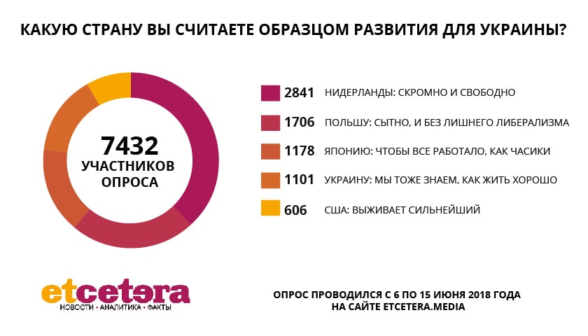 ОПРОС. С 6 по 15 июня EtCetera интересовался, какую страну украинцы считают образцом для развития. В опросе приняло участие 7432 человека.