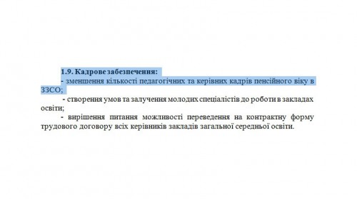 EtCetera ознакомился с текстом Программы (скачать его можно ЗДЕСЬ) и в пункте 1.9. «Кадровое обеспечение» Раздела 1. «Определение проблем, на решение которых направлена программа» обнаружил следующее: «уменьшение количества педагогических и руководящих кадров пенсионного возраста в ЗОСО».